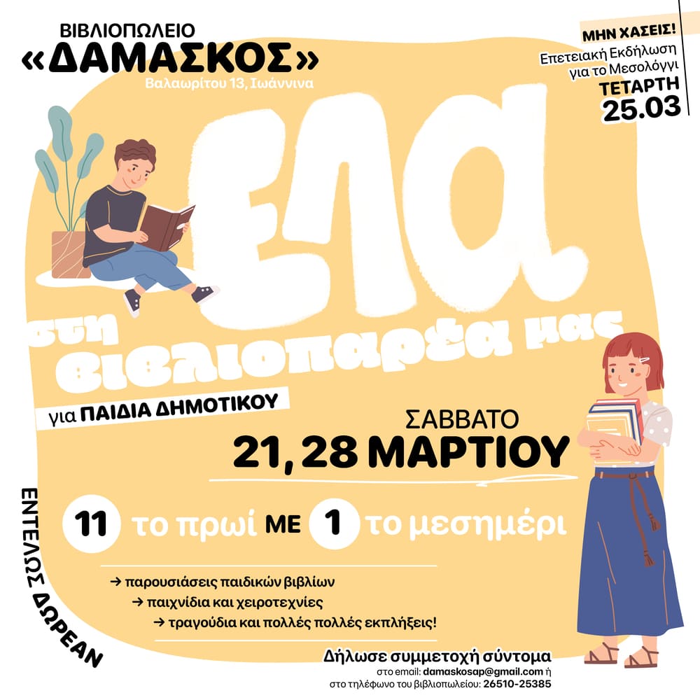 Το ορθόδοξο βιβλιοπωλείο «ΔΑΜΑΣΚΟΣ» σε προσκαλεί στην βιβλιοπαρέα του!