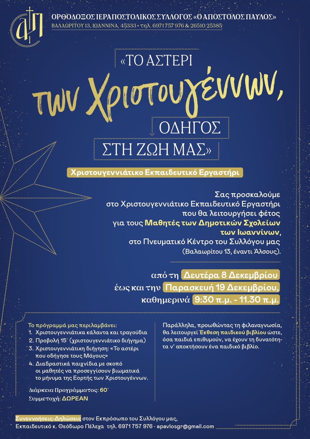 Ο Ορθόδοξος Ιεραποστολικός Σύλλογος "ο Απόστολος Παύλος" είναι η συνέχεια της αδελφότητος "ο Άγιος Κοσμάς". Δραστηριοποιείται από το 1960 στη πόλη των Ιωαννίνων και στην ευρύτερη περιοχή, ενώ συνεχίζει το έργο της πανηπειρωτικής αδελφότητος "ο Αγιος Κοσμάς". Με τις ευλογίες της Εκκλησίας μας,του Σεβασμιωτάτου ποιμενάρχου μας Μητροπολίτου Ιωαννίνων κ. κ. Μαξίμου και των προκατόχων αυτού πραγματοποιούνται στο πνευματικό κέντρο του συλλόγου διαλέξεις πνευματικής οικοδομής, κύκλοι μελέτης της Αγίας Γραφής, συναντήσεις νέων, επιστημόνων, εργαζομένων, φοιτητών και μαθητών. Διοργανώνει εκδηλώσεις - εορτές και αφιερώματα - θρησκευτικού και εθνικού περιεχομένου. Στον τομέα της φιλανθρωπικής δράσεως επιδεικνύει θεάρεστο έργο με επισκέψεις αγάπης σε νοσοκομεία, φυλακές και εμπερίστατους συνανθρώπους μας. Διοργανώνει κατά διαστήματα εκδρομές σε διάφορα μέρη της πατρίδος μας. Ιδιαίτερη μέριμνα για τη νεότητα είναι η λειτουργία της κατασκηνώσεως στο Γρεβενίτι Ιωαννίνων, όπου δεκάδες παιδιά κάθε καλοκαίρι κατηχούνται στην ορθόδοξη πίστη, μαθαίνουν την ιστορία της πατρίδας μας και απολαμβάνουν τη χαρά και τη ψυχαγωγία της κοινής ζωής μέσα στη φύση. Ο σκοπός όλων αυτών των δραστηριοτήτων είναι ο πνευματικός καταρτισμός των μελών, η βαθύτερη γνωριμία με το πρόσωπο του Θεανθρώπου Κυρίου μας Ιησού Χριστού, η συνειδητή συμμετοχή στα ιερά Μυστήρια και στη ζωή της Εκκλησίας μας, η διακονία των μελών στο φιλανθρωπικό, κατηχητικό και ιεραποστολικό έργο της Εκκλησίας. Το πνευματικό έργο του συλλόγου μας στηρίζει και καθοδηγεί η Αδελφότης Θεολόγων "ο Σωτήρ".