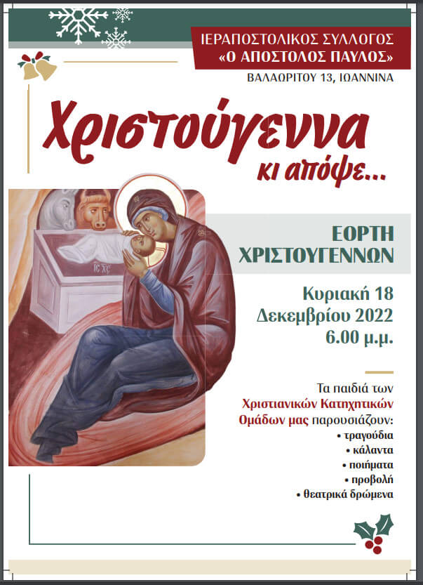 Χριστουγεννιάτικη εκδήλωση - Χριστούγεννα κι απόψε... ΚΥΡΙΑΚΗ 18 ΔΕΚΕΜΒΡΙΟΥ 2022 6.00μ.μ. Διαβάστε Περισσότερα