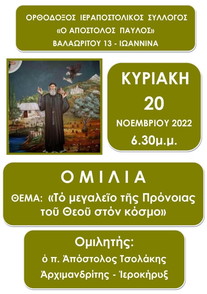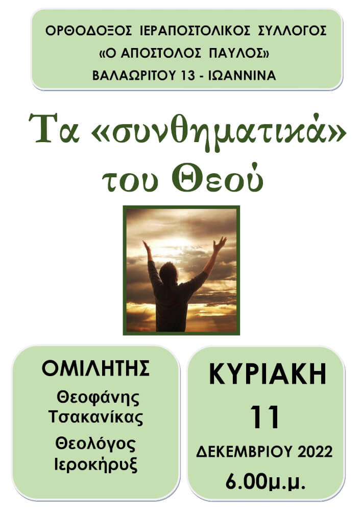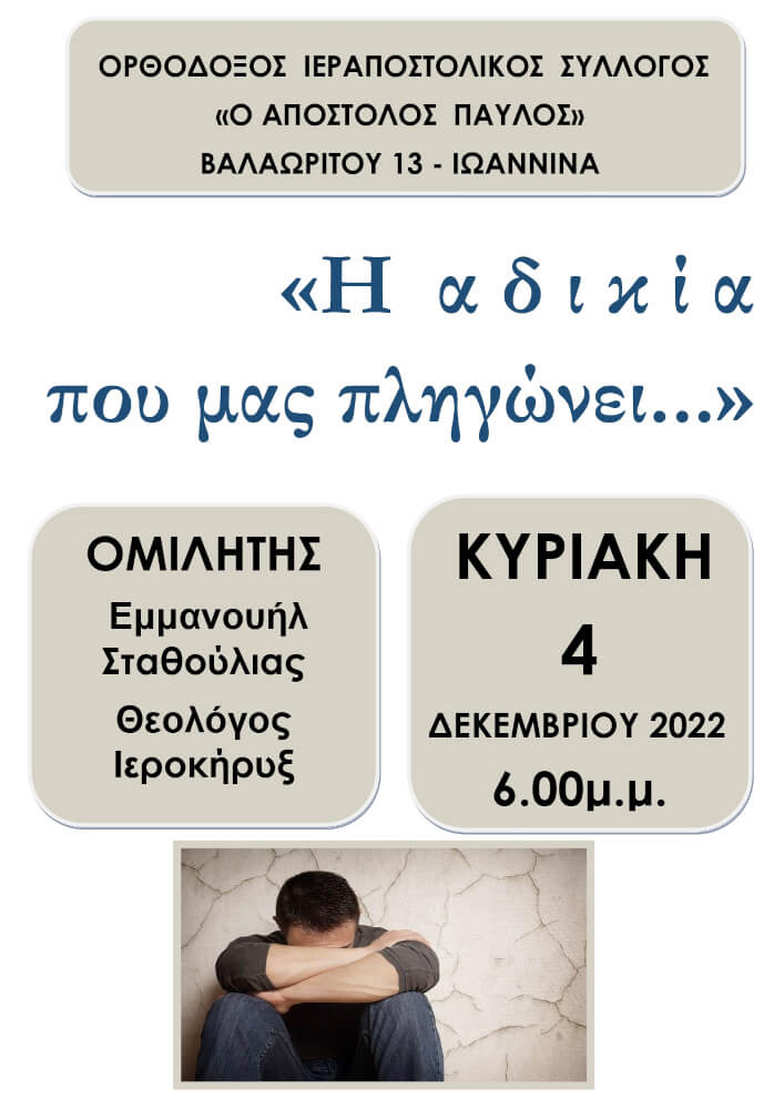 Ομιλία -Το μεγαλείο της Πρόνοιας του Θεού στον κόσμο ΚΥΡΙΑΚΗ 20 ΝΟΕΜΒΡΙΟΥ 2022 6.30μ.μ. Διαβάστε Περισσότερα