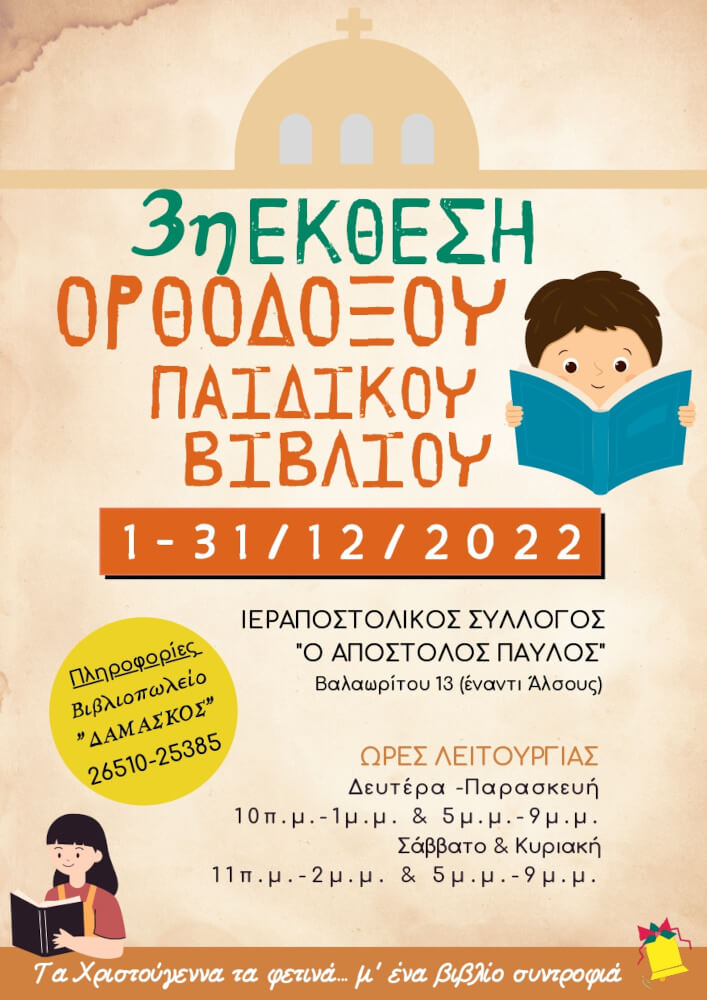3η Έκθεση Ορθόδοξου Παιδικού Βιβλίου 1-31 Δεκεμβρίου - Έκθεση και παράλληλες εκδηλώσεις. Διαβάστε Περισσότερα
